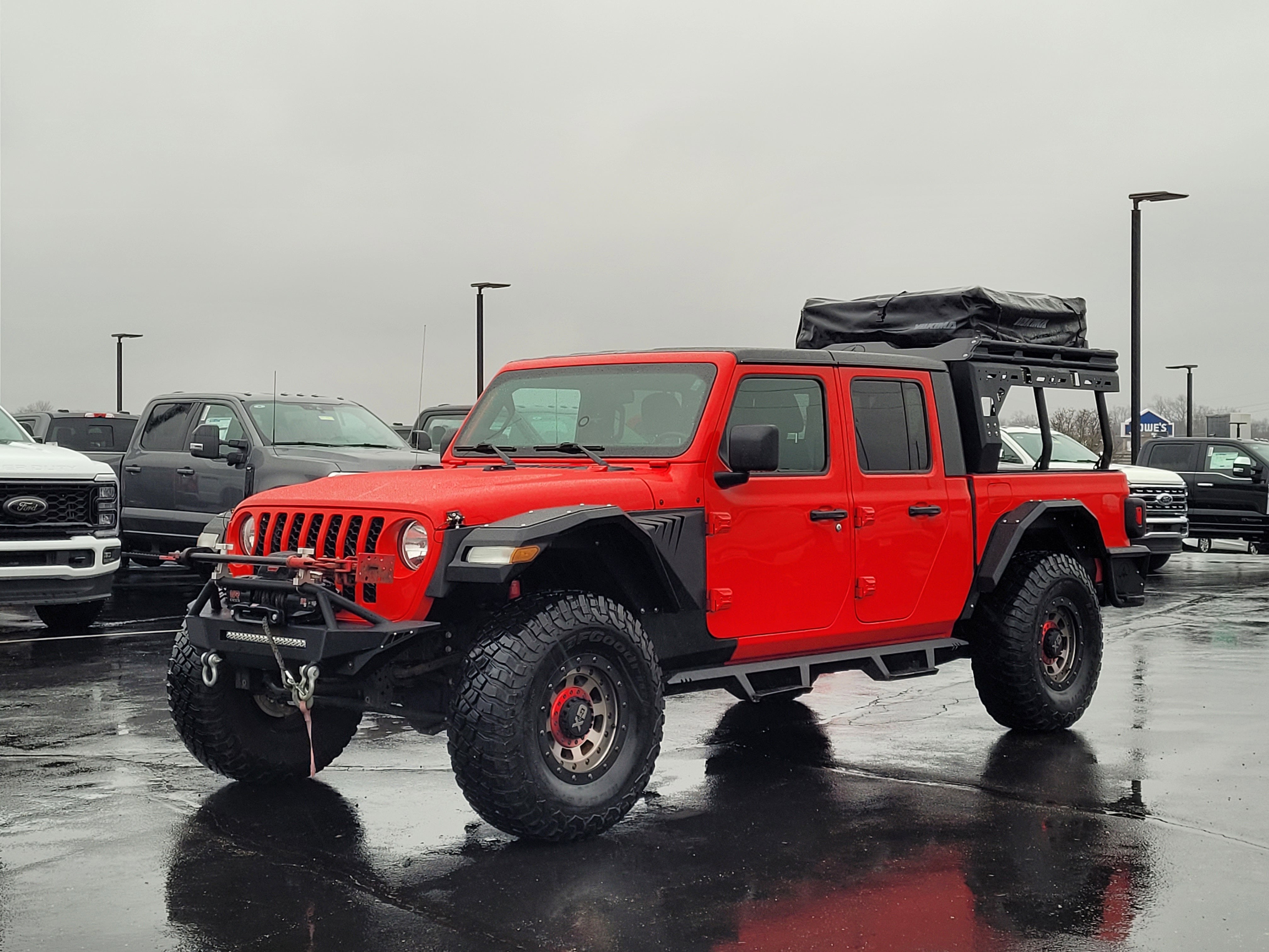 Firecracker Red Clearcoat 2020 Jeep Gladiator Sport 4D Crew Cab with 4WD and a 3.6L V6 24V VVT paired with an 8-speed automatic transmission. This Gladiator Sport is a fully equipped midsize pickup ready for off-road adventures, towing, and daily driving.